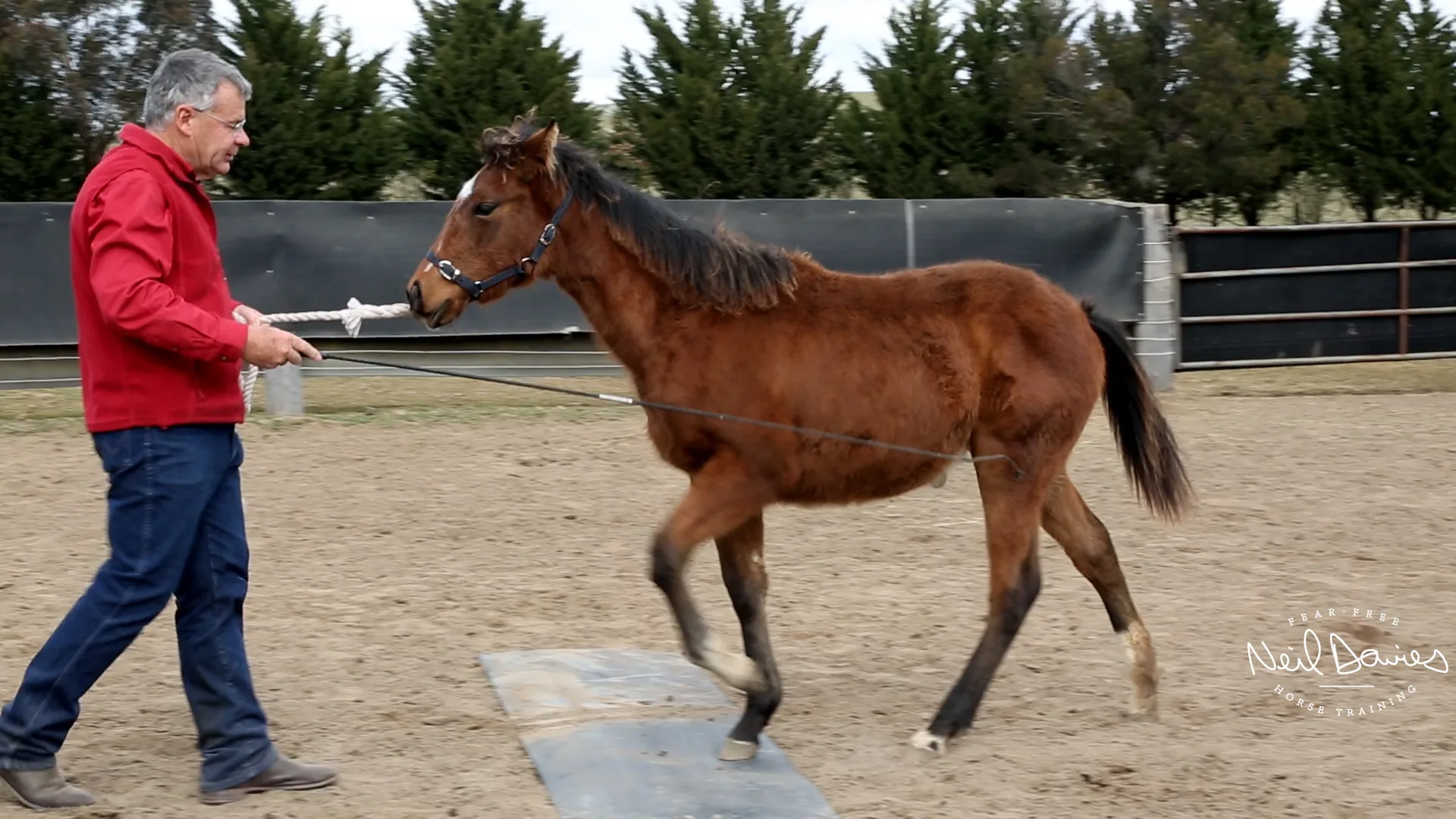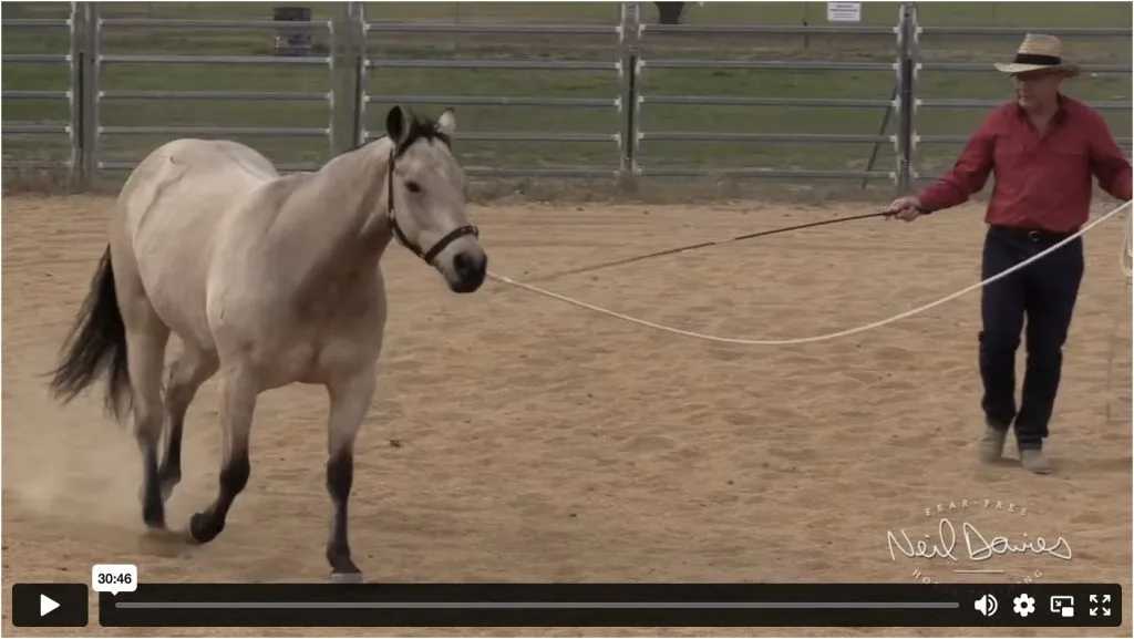 A frightened horse must be taught to be confident and relaxed, one step at a time.